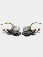 Hoop earrings with medium-sized flower and pearlescent effect. Golden finish.