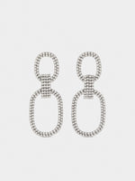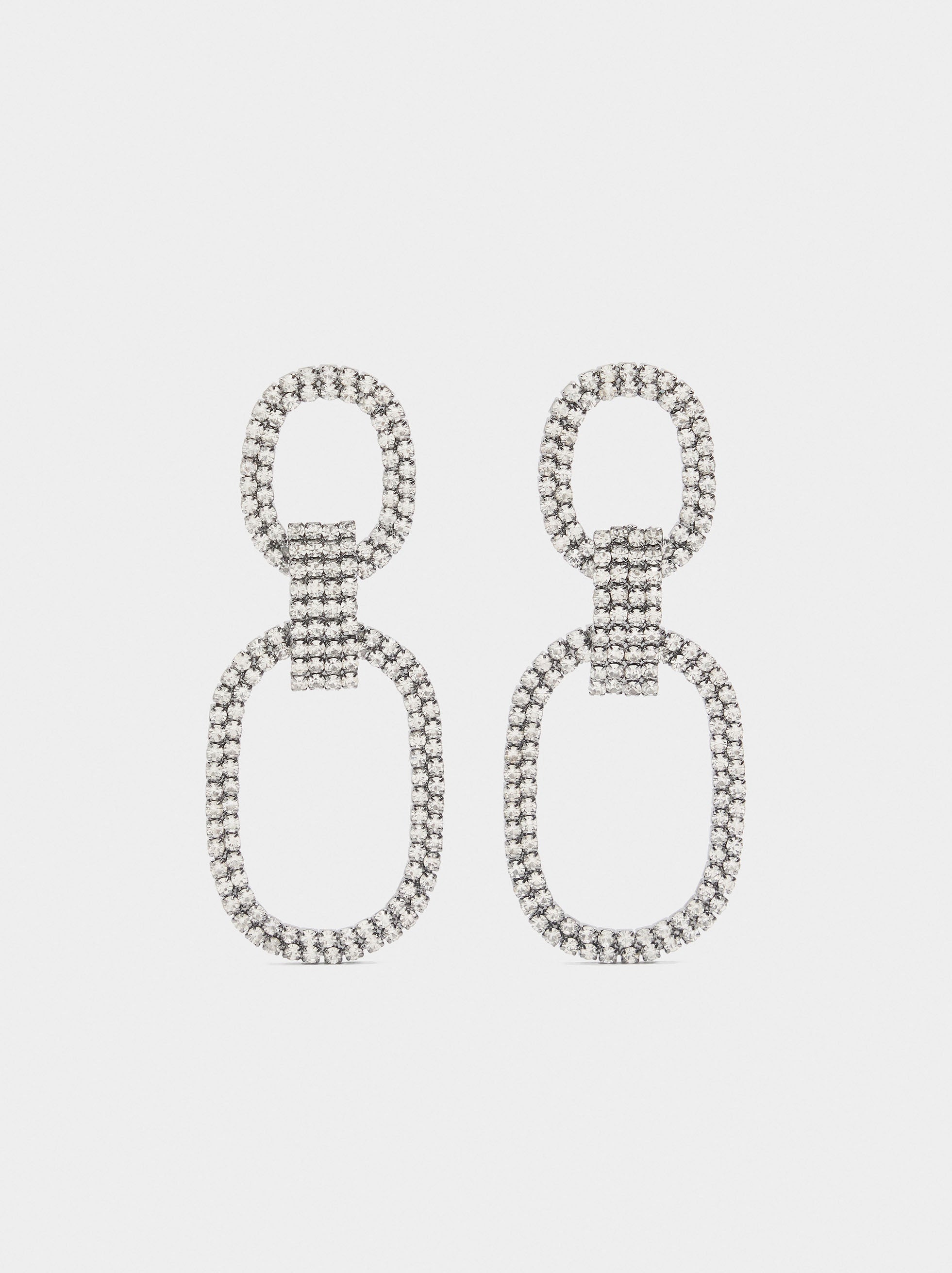 Pendientes maxi largos con aros alargados en dos tamaños, con cristales. Acabado plateado.