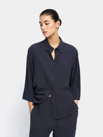 Camisa fluida de lyocell. Cuello de solapa. De manga larga. Cierre con botones dobles. La modelo mide 1,75 m y lleva la talla S.