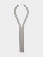 Collar en forma de corbata con cristales. Cierre de mosquetón. Acabado plateado oscurecido.