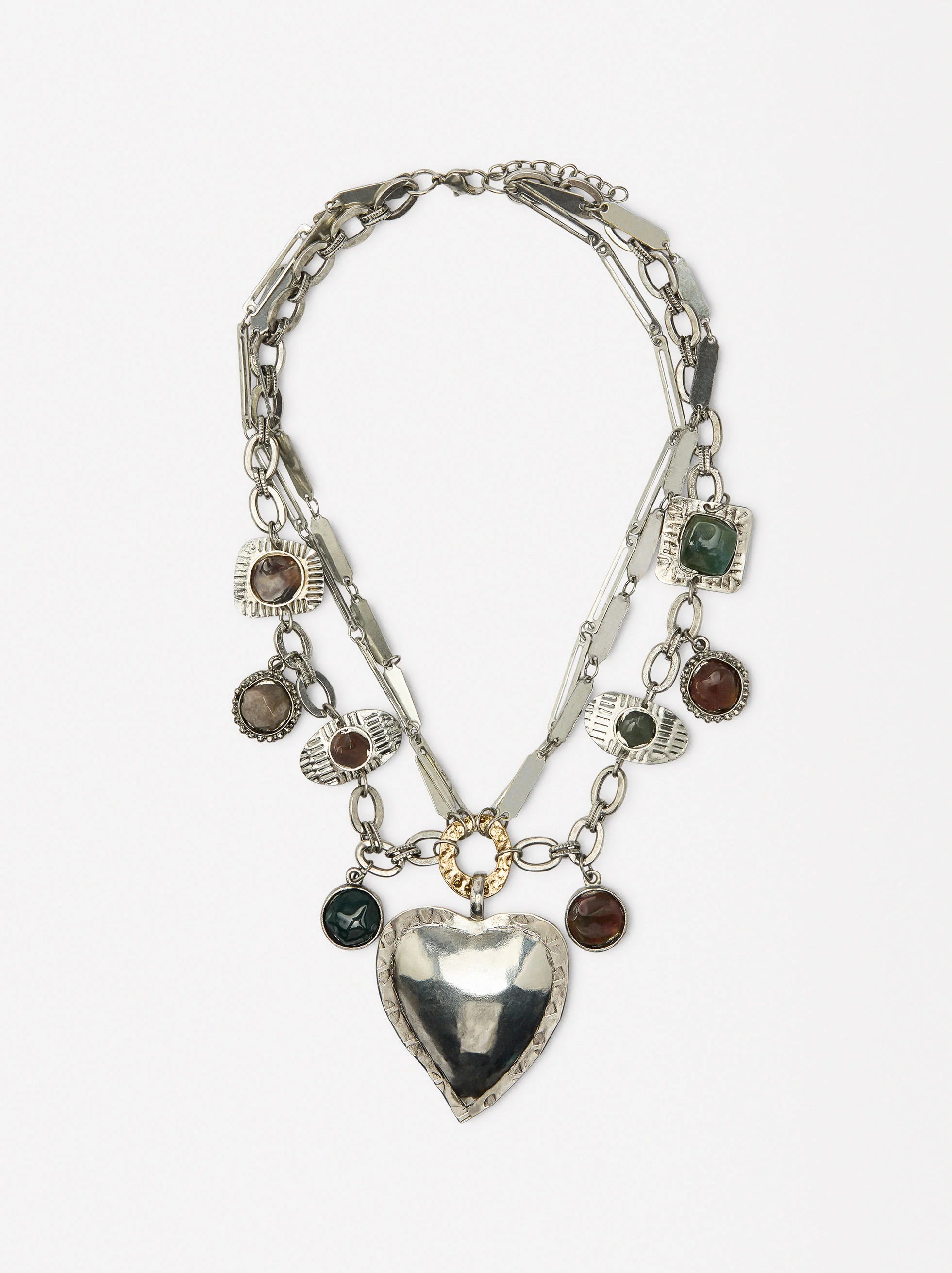 Nuestra colección TREND: pendientes, aros y collares maxi que destacan por sus piedras naturales y acabado envejecido. Algunos de estos accesorios son bicolor, dorados y plateados, lo que les otorga un toque único. Todos combinan un estilo audaz y sofisticado gracias a sus diseños geométricos, con flores, corazones, óvalos y barras, convirtiéndose en los complementos ideales para quienes buscan marcar tendencia con originalidad y elegancia.