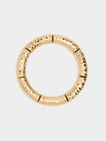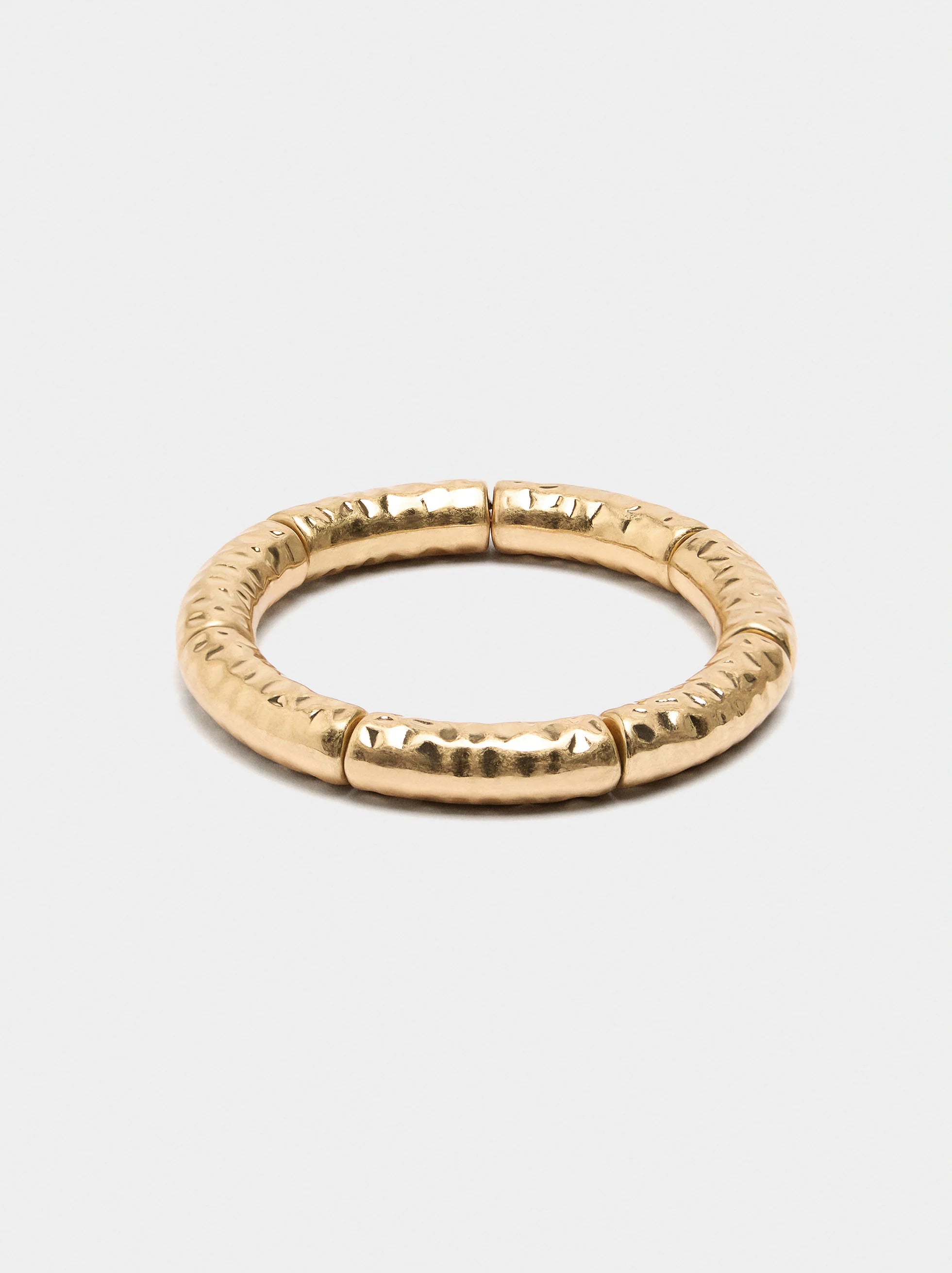 Tubular segmented elastic bracelet. Hammered effect and aged effect. Golden finish.
